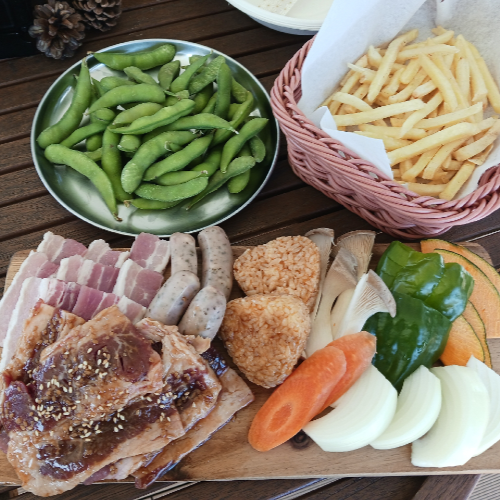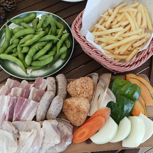 人数分…焼き肉のたれ・塩コショウ・サラダ油・紙皿・割り箸・カップ・ソフトドリンク飲み放題付